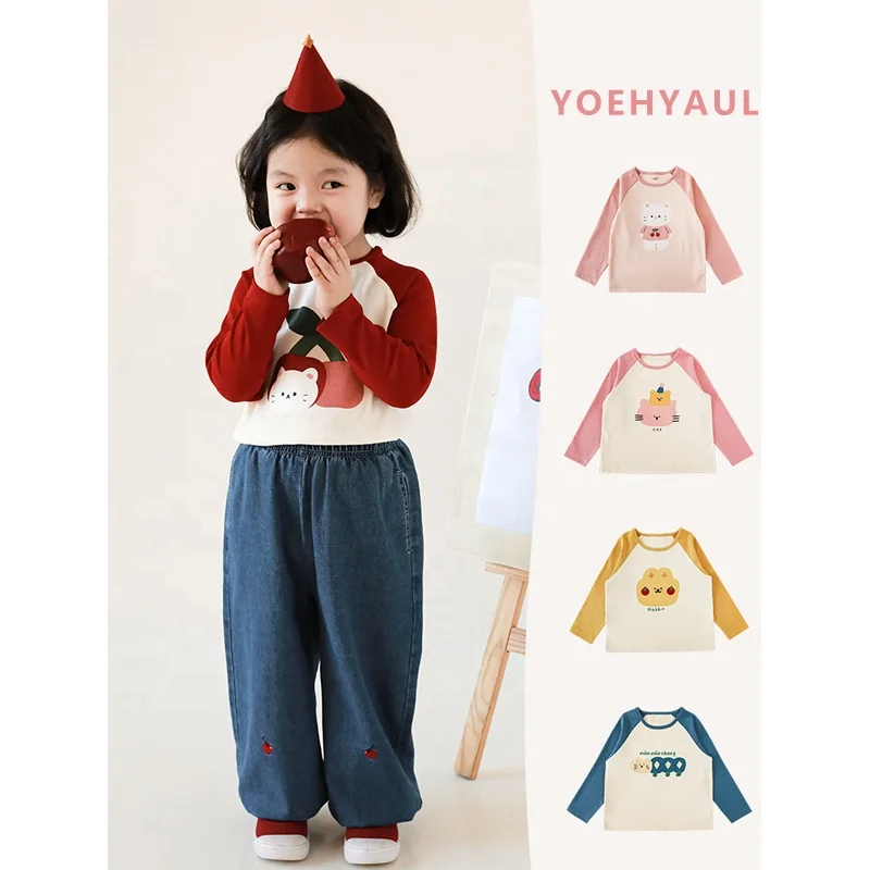 YOEHYAUL Custom Spring Clothes Girls High Cotton Bottoming Shirt Wholesale Colorful Long Sleeve Sweatshirt